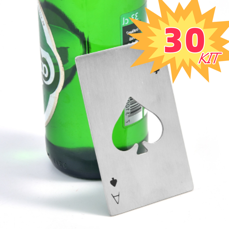 Kit 30 Abridor de Garrafa Formato Carta De Baralho As De Espadas Aco Inox