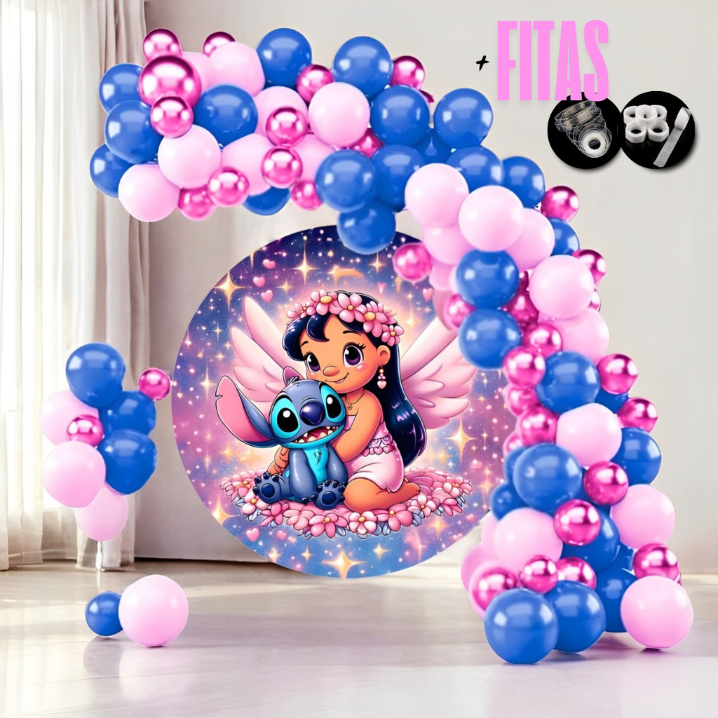 Kit 125 Balões Festa Stitch & Angel + Fita Arco - Balão Bexiga Liso/Cromado Para Aniversários