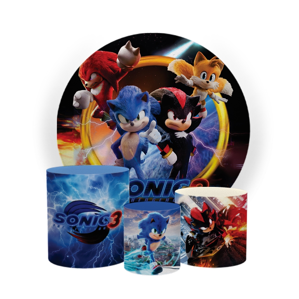 Kit Painel Redondo 1,50x1,50 + Capas De Cilindro Padrão Tema Sonic