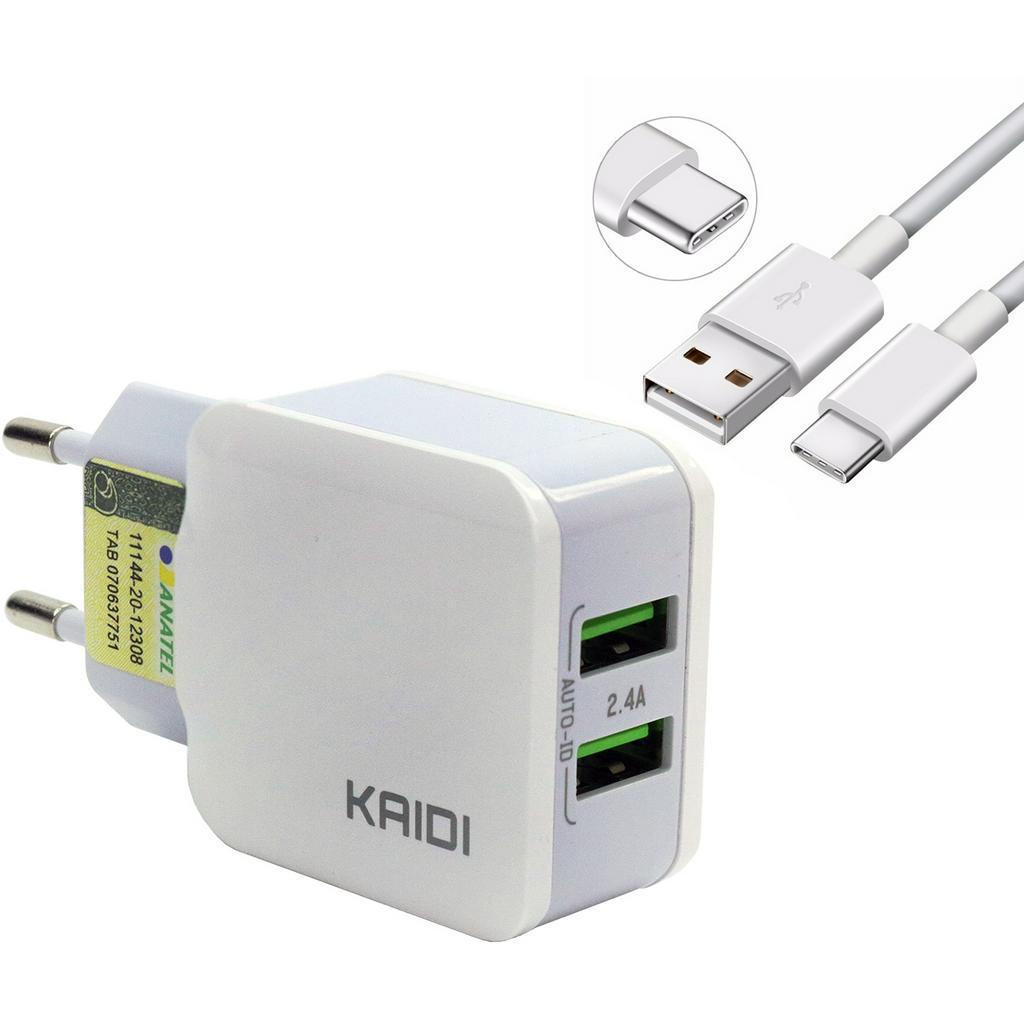 Carregador Celular Turbo 2 Usb Com Cabo USB Incluso Homologado Anatel Kaidi Compatível iPhone/Android