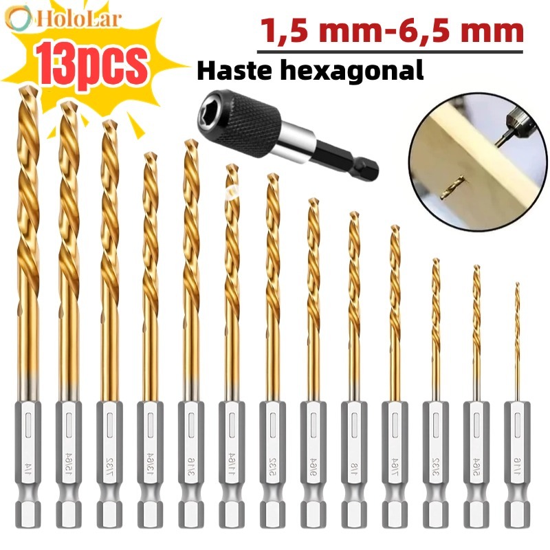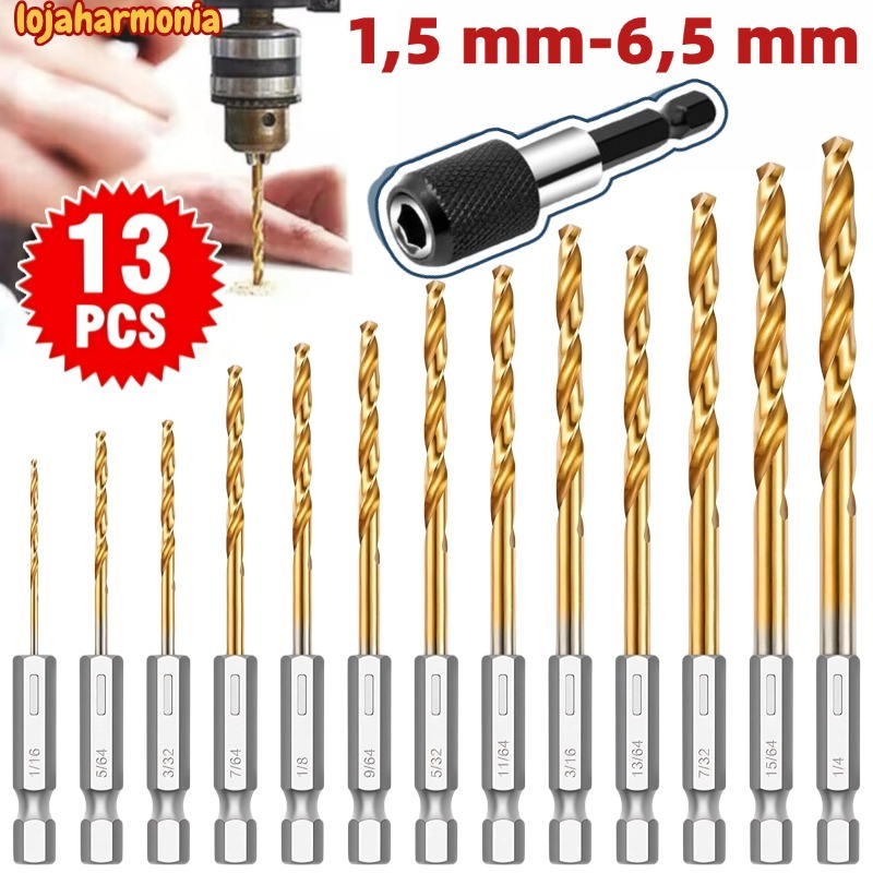 Kit 13 peças Jogo de Brocas Hexagonais Titânio HSS Troca Rápida para Madeira Plástico Metal Alumínio