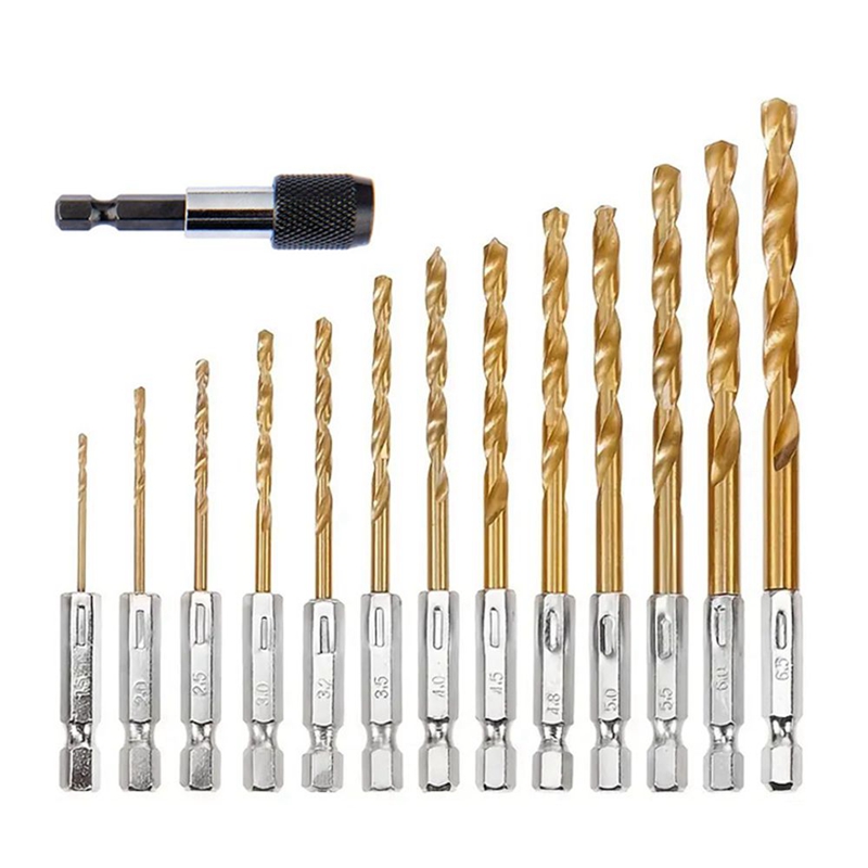 13 Pçs Conjunto De Brocas Helicoidais Titânio Hex Haste HSS + Mudança Rápida Adatper Madeira Plástico Metal Liga Alumíni