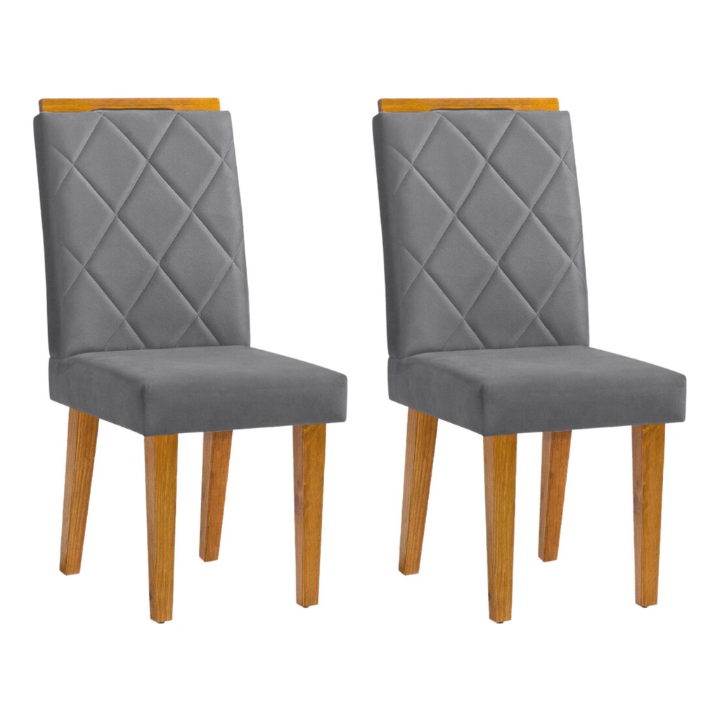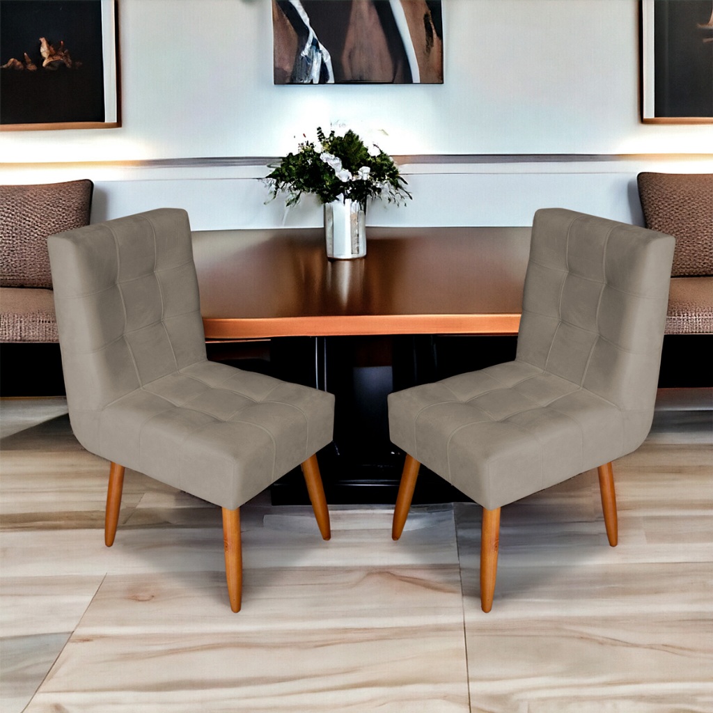 Kit 2 Cadeiras De Jantar Estofada Diana Pés Em Madeira