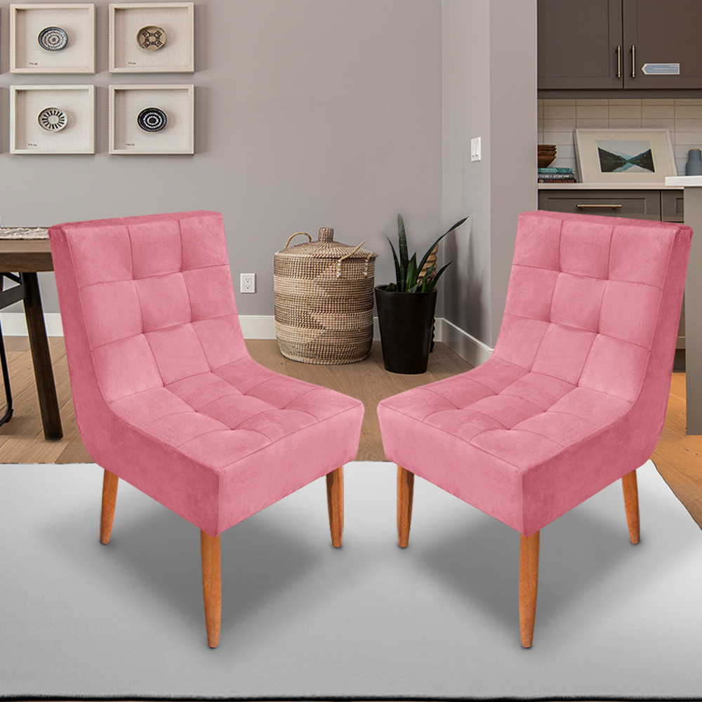 Kit 2 Poltronas Cadeira Estofada com pés de Madeira em Suede