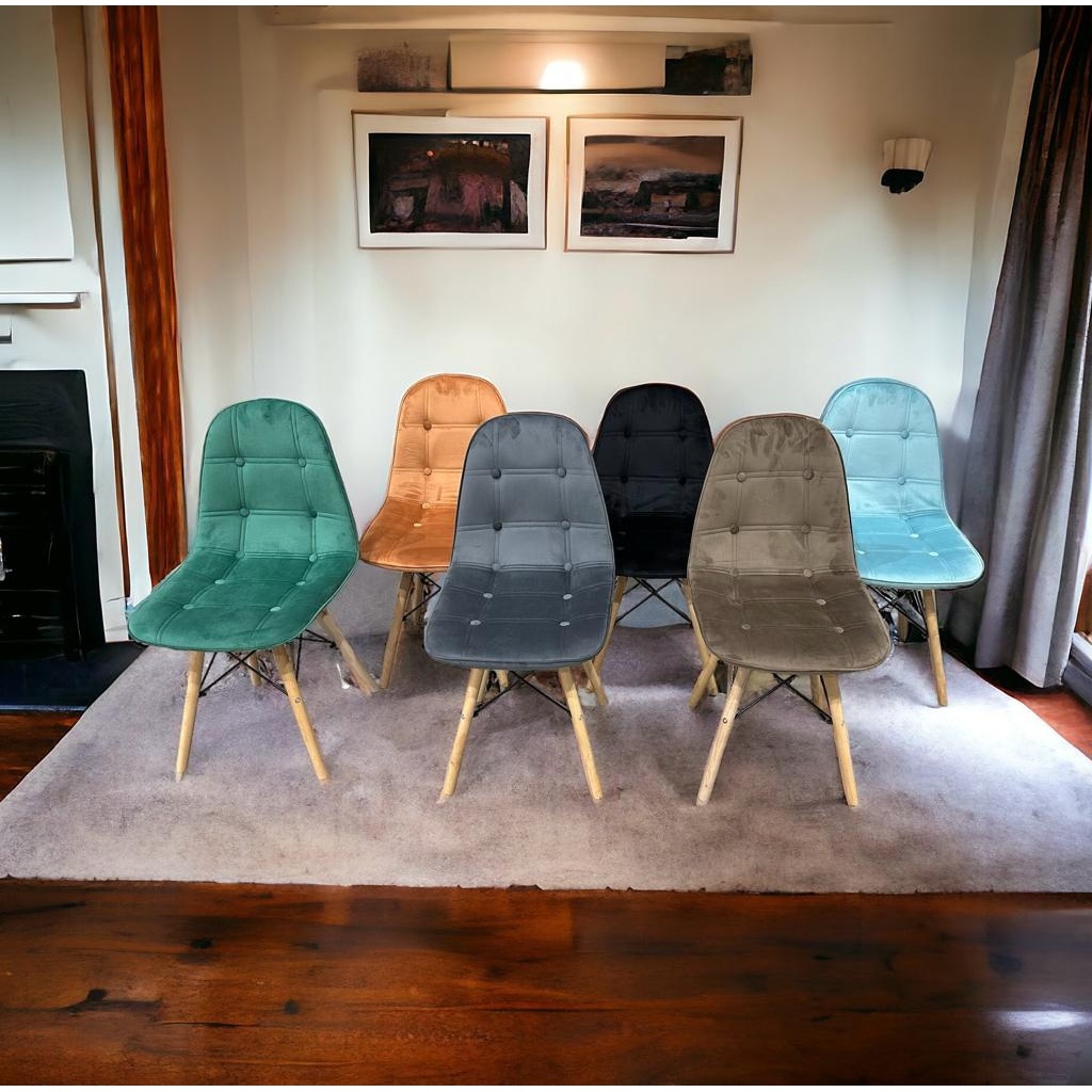 Kit com 2 Cadeiras Botonê Assento de Veludo Pés de Madeira