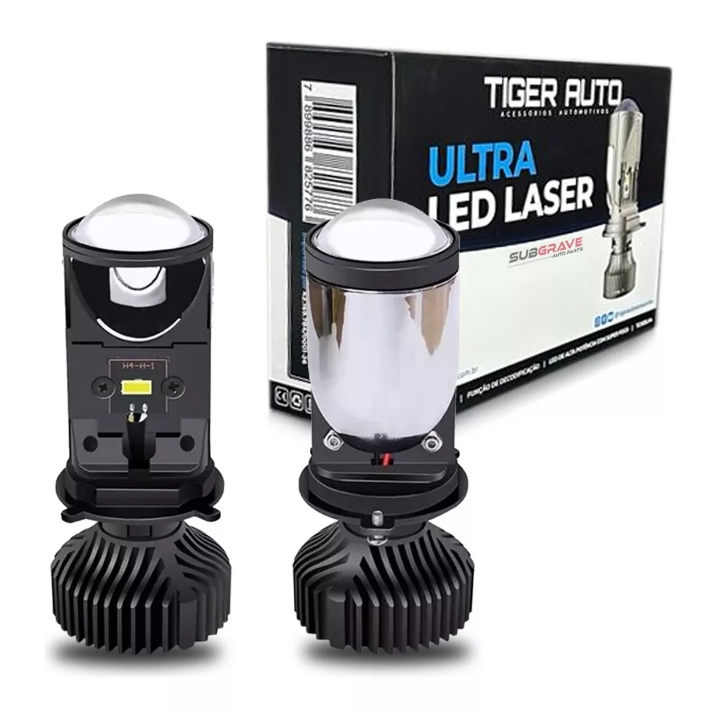 Par Farol Ultra Led Lâmpada H4 Mini Projetor Laser 6500k Forte Tiger