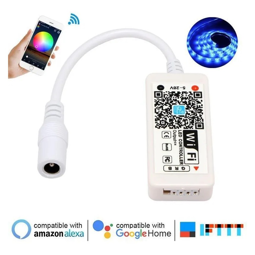 Controlador de fita Led RGB Wifi - 5v a 28V (100 Watts) Compatível com Alexa e Google Home