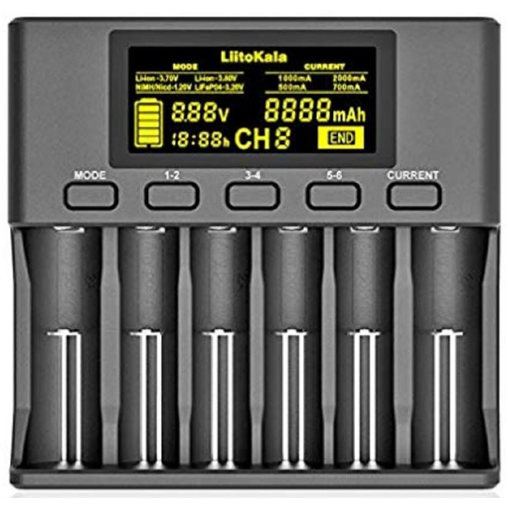 Carregador Liitokala Lii S6 Carrega Até 6 Baterias/Pilhas