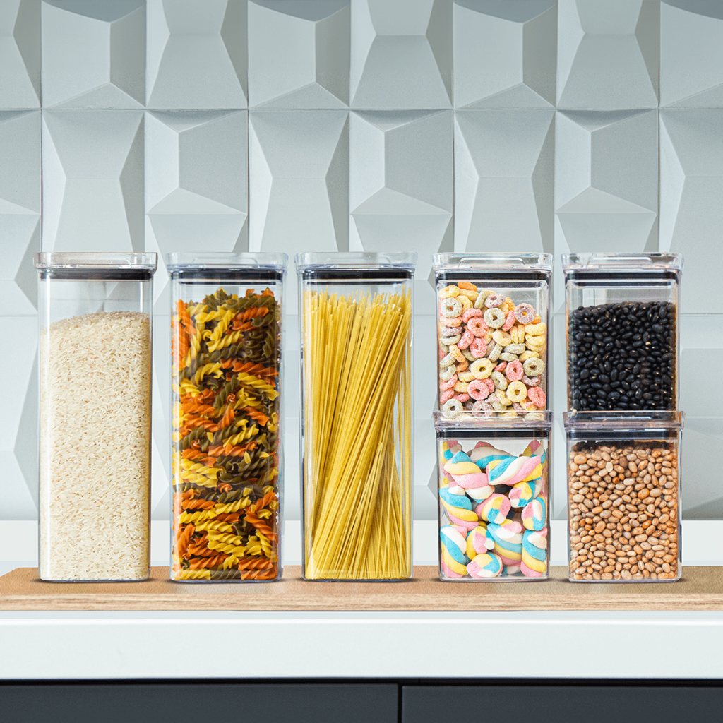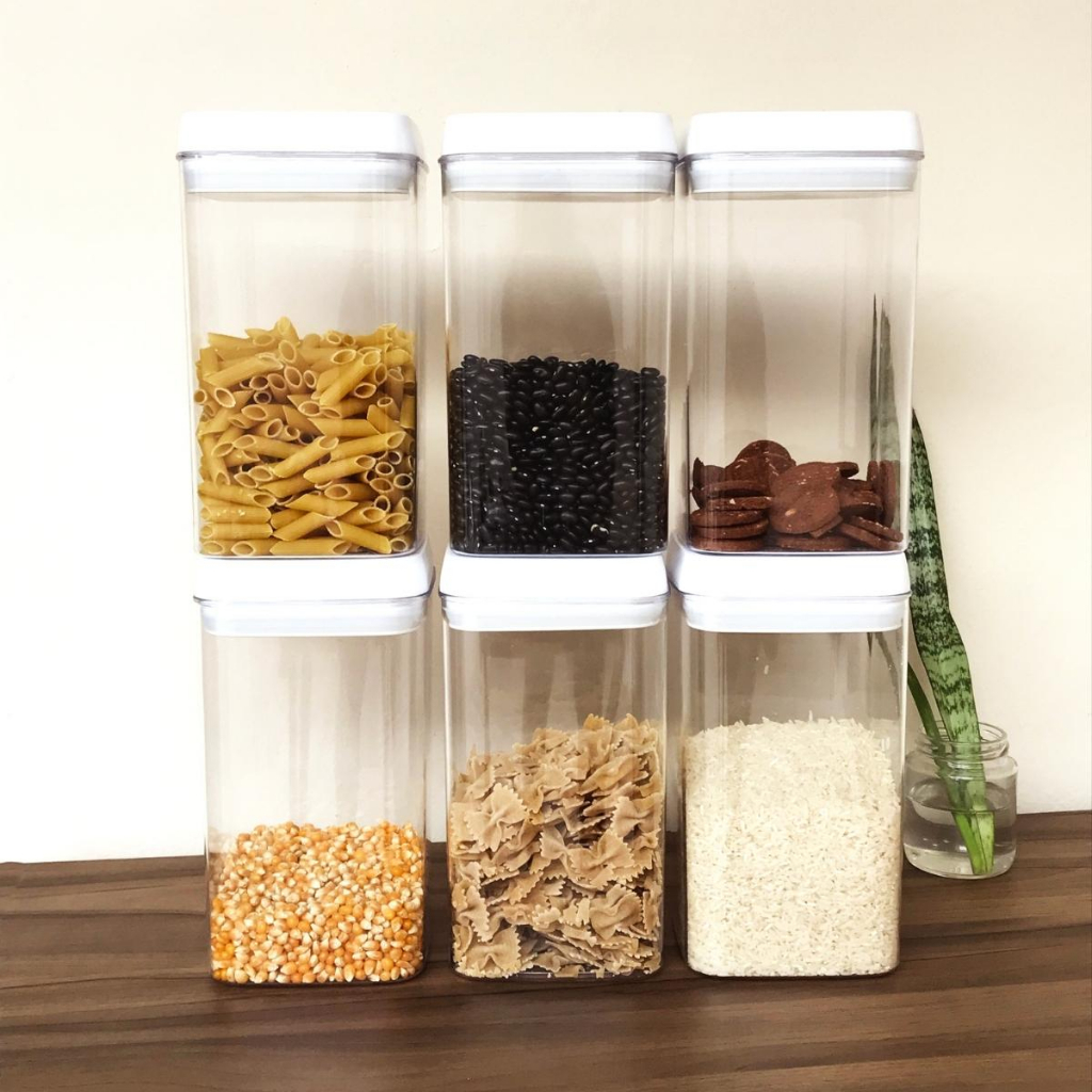 Kit Potes Herméticos Quadrados Mantimentos Cozinha Acrílico 1,1 e 2,3 Litros