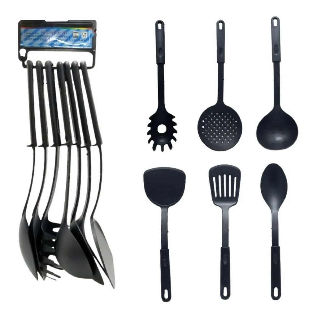 Kit Com 5 Ou 6 Unidades Talheres Peças Jogo de Utensílios Preto Colher Plástico Para Casa Em Cozinha Multiuso Conjunto Concha Resistente a Calor nylon