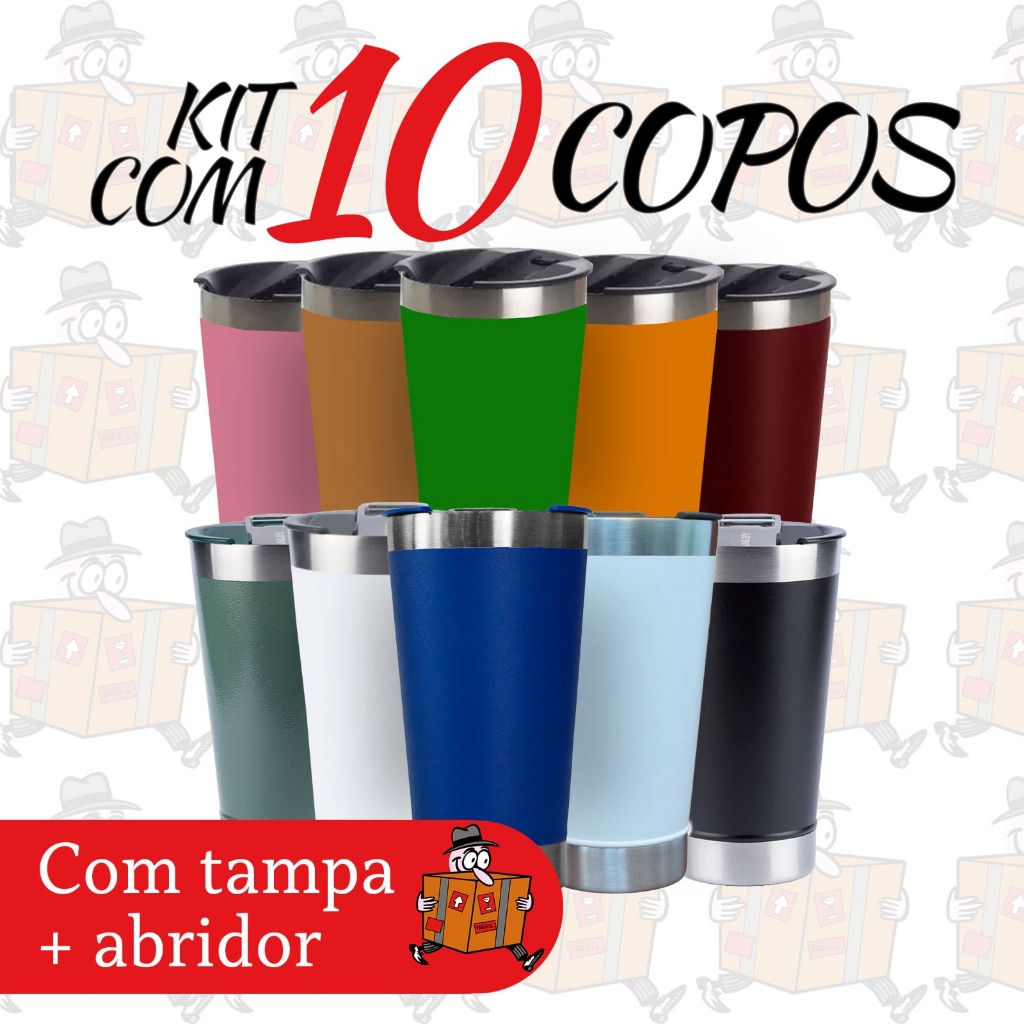 Kit com 10 copos térmico 473ml com tampa e abridor , copo de Inox , copo térmico ,copo de cerveja, copo para chopp