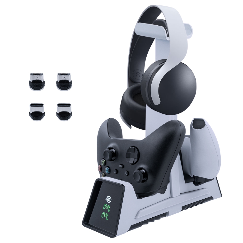 Carregador Duplo Com Suporte De Fone De Ouvido Para PS5/PS4/Switch Pro/Xbox Série X & S One Slim Controlador Elite