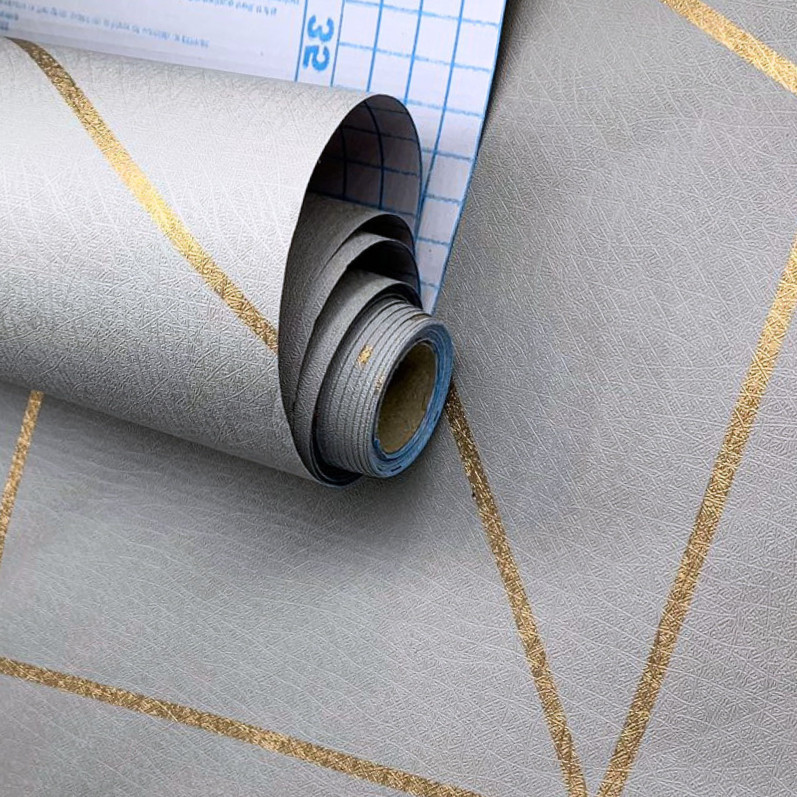 Kit Papel Adesivo Cinza e Dourado Zara Geométrico 5 Metros x 45cm Adesivo Premium Quarto Sala