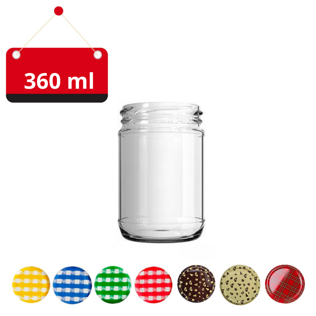 05 Potes de Vidro Andino 360 ml com tampa Xadrez e lacre, para Doces, Conservas, Geléias, Saladas, Porta temperos, entre outros