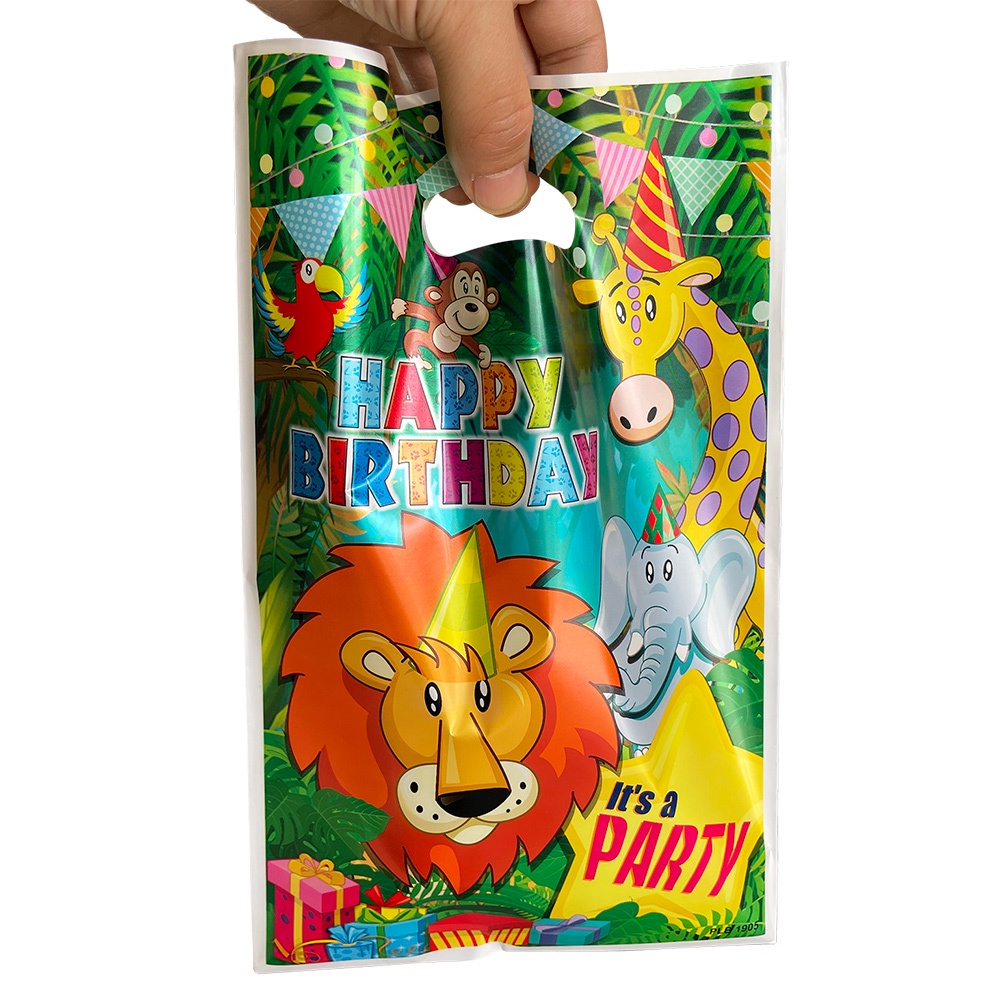 Sacos De 10pcs Goodies Bags Para A Festa Do Leão Da Selva Rei Safari Favoritos De Aniversário Plástico Candy Bag Tema Decoração Girafa Macaco nimal Lions Jungle Party Doce