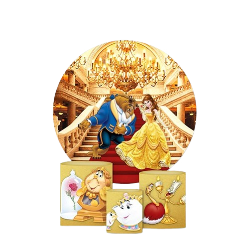Painel redondo 1,50m + capas cilindros tecido sublimado A BELA E A FERA