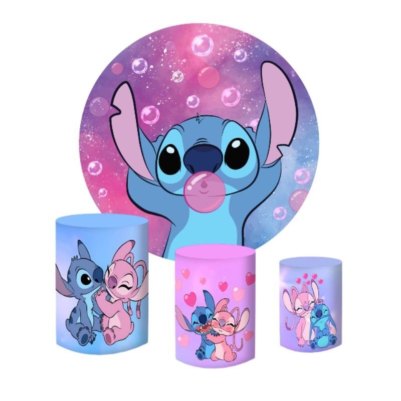 kit Stitch angel cute rosa azul painel redondo 1,5m capas cilindros tecido sublimado