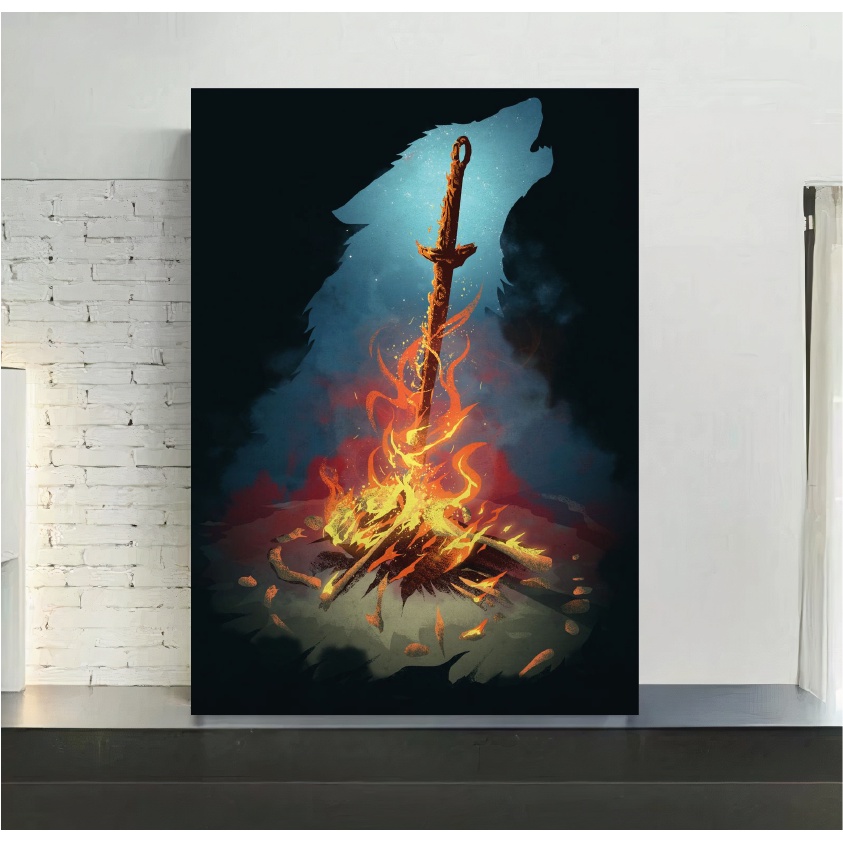 Quadro de mdf poster sem moldura, Jogo, Elden Ring, Dark souls, Bonfire