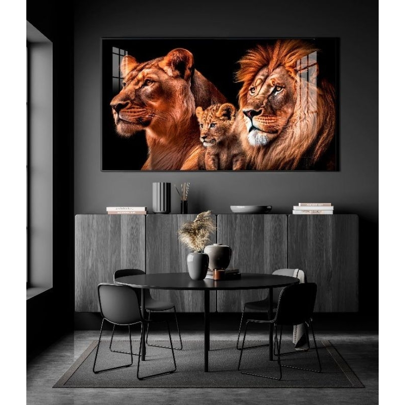 Quadro Com Moldura Decorativo GRANDE Alta Resolução Para Sala Quarto Escritório Quadro Familia Leão de Judá e Leoa com 1 Filhote