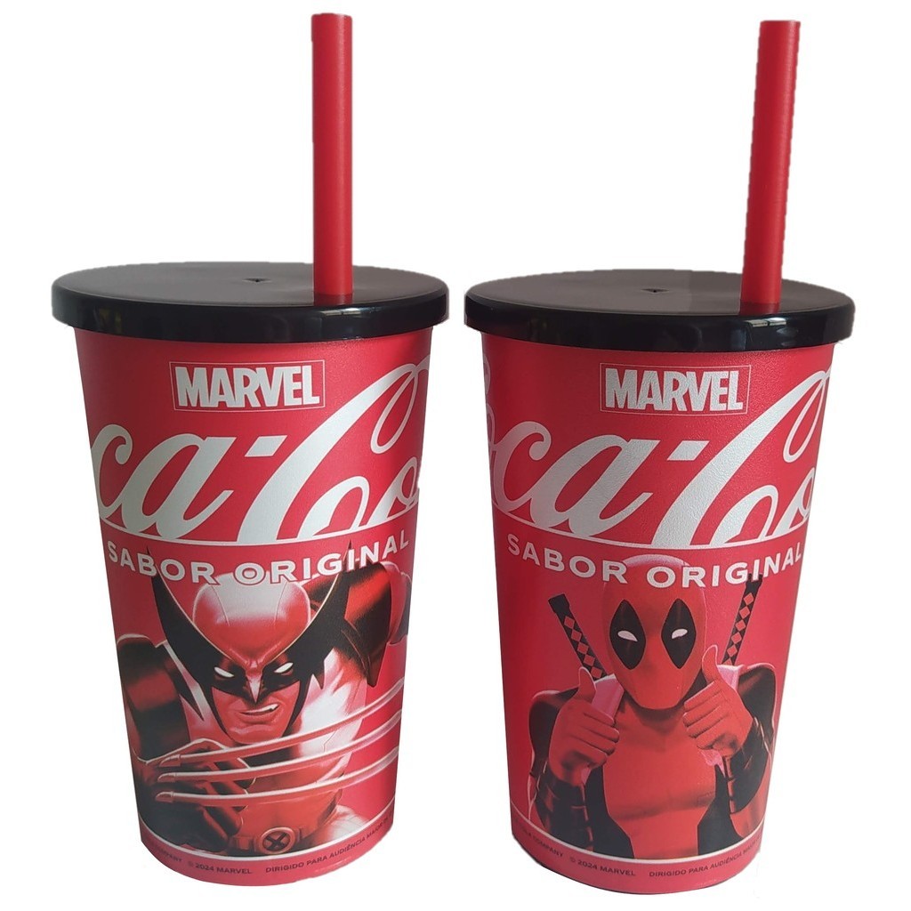 2 Copo Deadpool e Wolverine Coca-Cola Cinemark Marvel Copão 1 L exclusivo Canudo c/ Tampa Deadpool 3