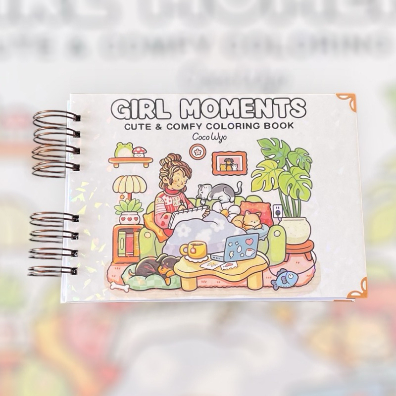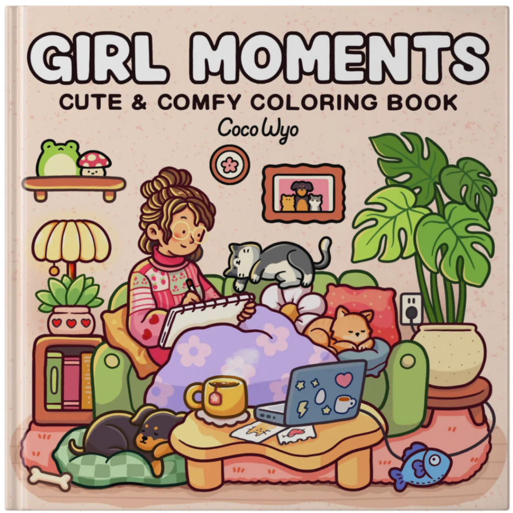 Livro de Colorir Girl Moments – Cute & Comfy – Antiestresse para Adultos e Jovens | Coco Wyo