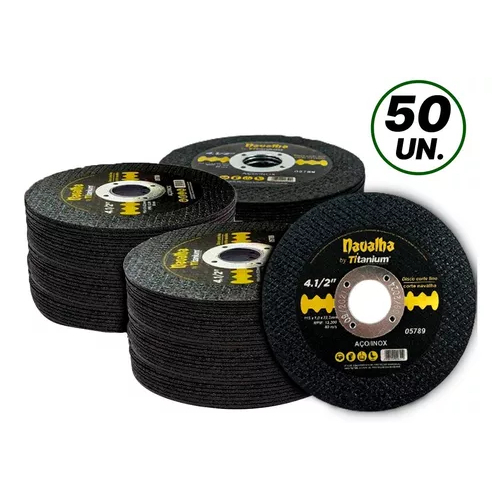 Kit 50 Discos De Corte Fino Aço Inox 4.1/2 (115mm) x1.0x22,2mm Super Premium Para Esmerilhadeira Tit