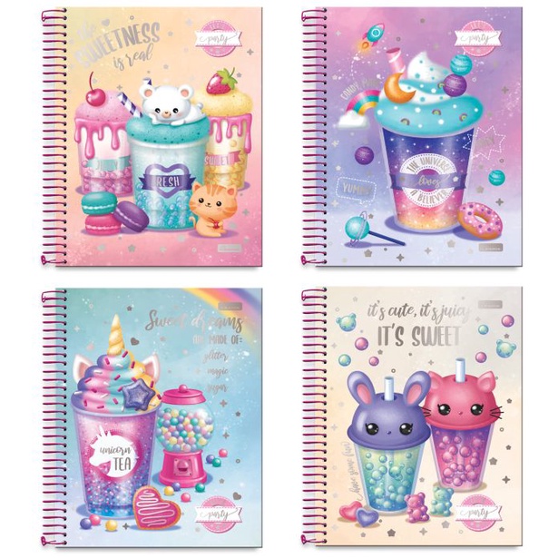 Caderno 1 Matéria 80F á 10 Matéria 177mm x 240mm CD Universitário Espiral Let's Party