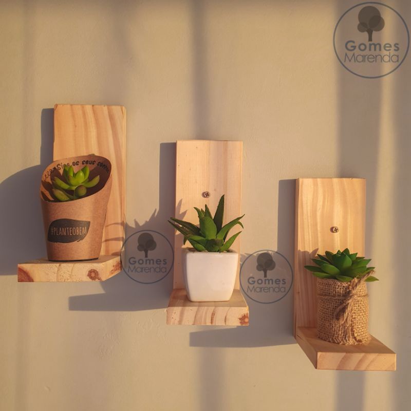 Kit 3 Prateleiras suspensas de madeira Pinus, para Plantas, banheiro, quarto e decoração em geral