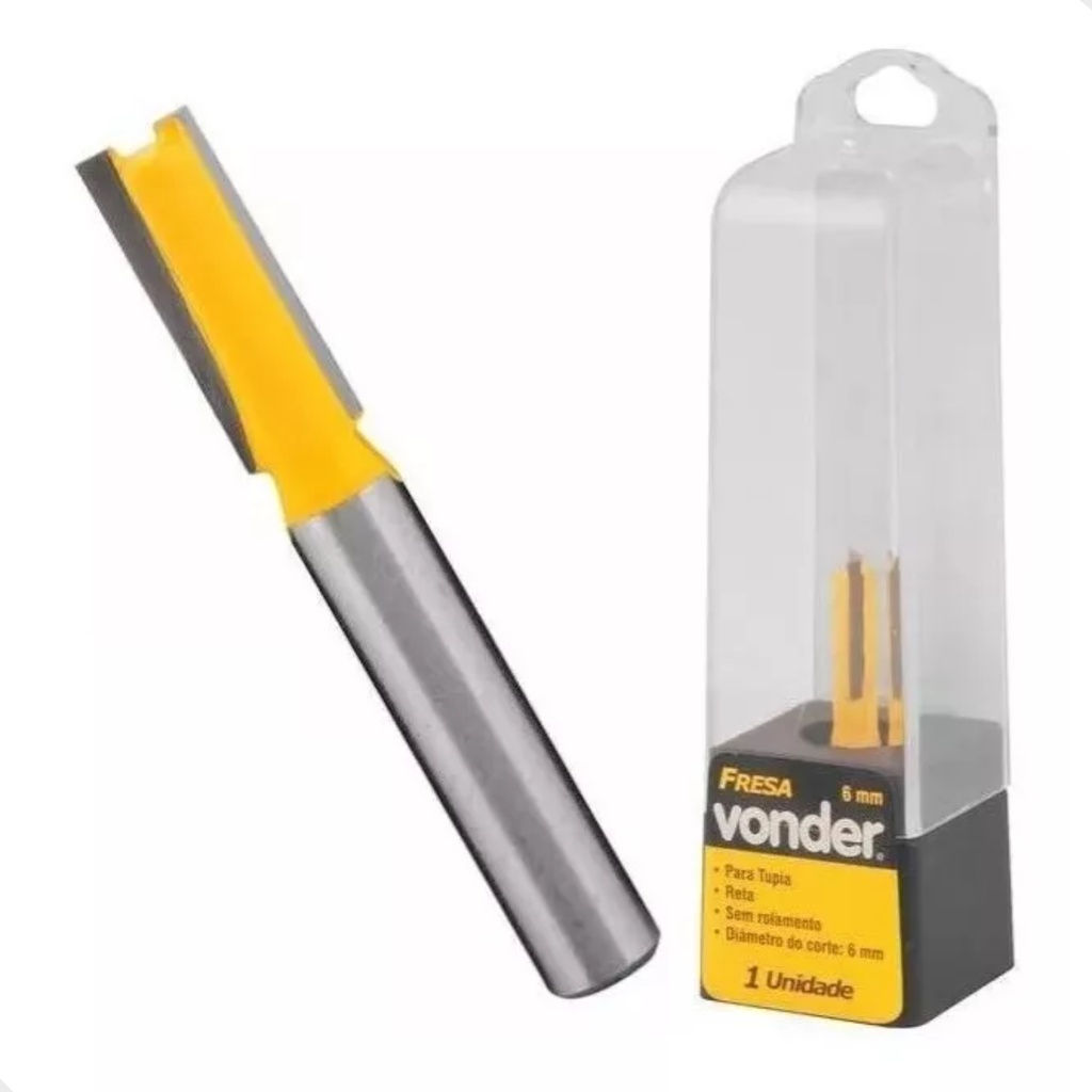 Fresa Reta 6mm Haste 6mm Corte Duplo para Madeira Tupia Vaz