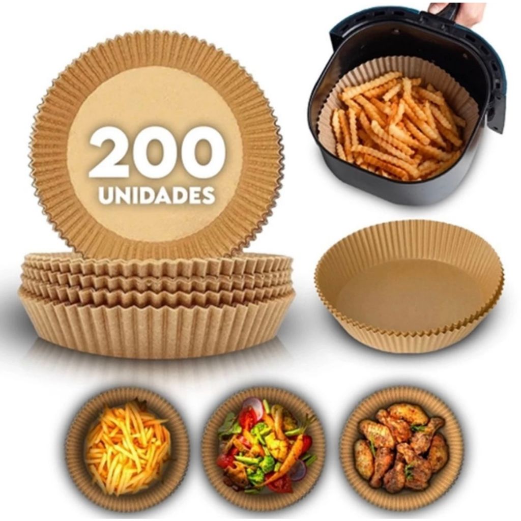 Kit Com 50/100/200 Formas Para Air Frayer Fritadeira Descartáveis Antiaderente De Papel Redonda