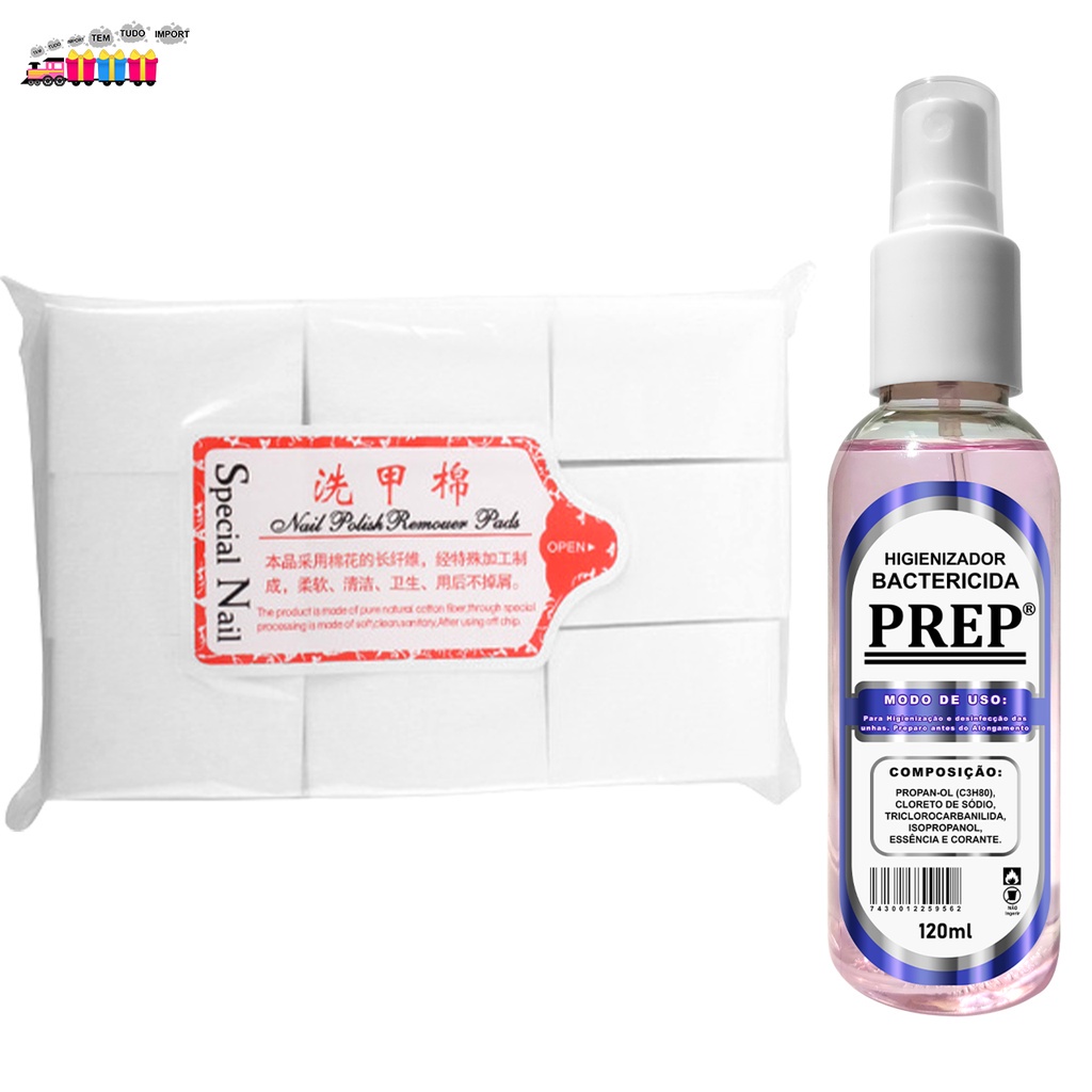 Prep Antisséptico Para Higienização Das Unhas + Algodão com 1000 UNIDADES Prensado Para Unha