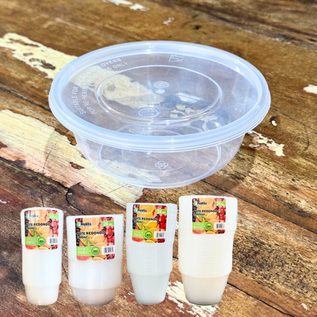 Kit 24 Pote Redondo Multiuso Plástico Freezer e Microondas Descartável Ideal Para Bolo Marmita Fit