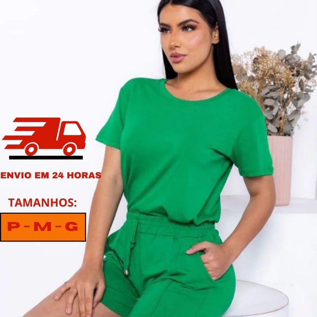 Conjunto Feminino Crepe de Malha Plus Size Blusa e Bermuda Ciclista Short