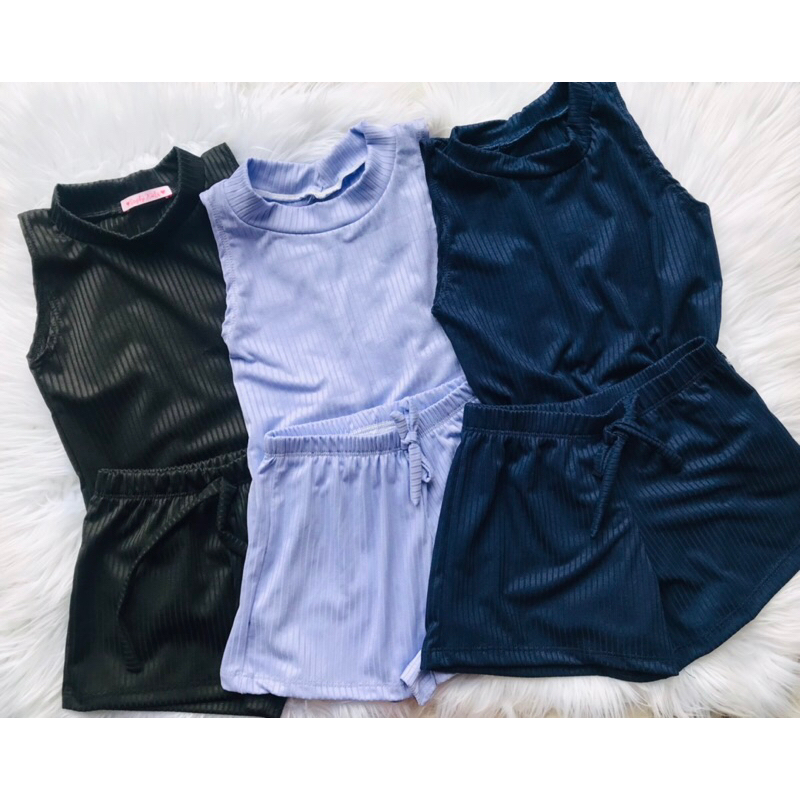 conjunto infantil menina blusa regata com short dia a dia na malha canelada super confortável para o uso diária passeio e deixa sua baby super estilosa e elegante com conforto que a as mamães amamos