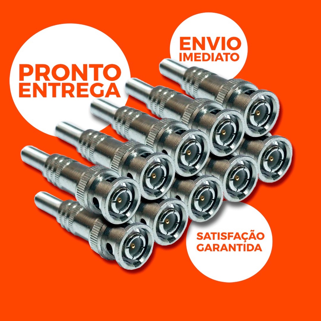 Kit 10 Conector Bnc 50 ohms Macho C/Mola e Parafuso P/ Cftv