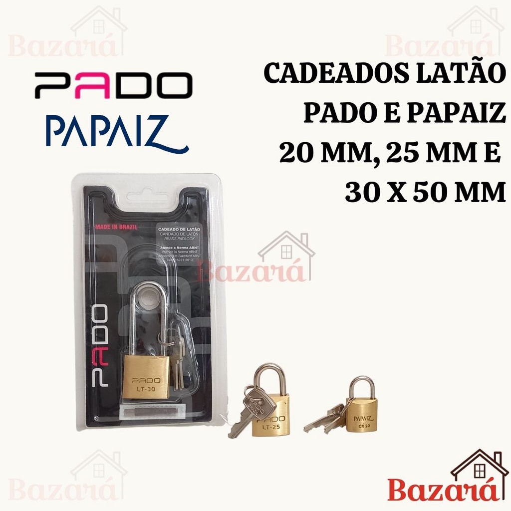 Cadeados de latão Pado e Papaiz 20 mm, 25 mm e 30 x 50 mm