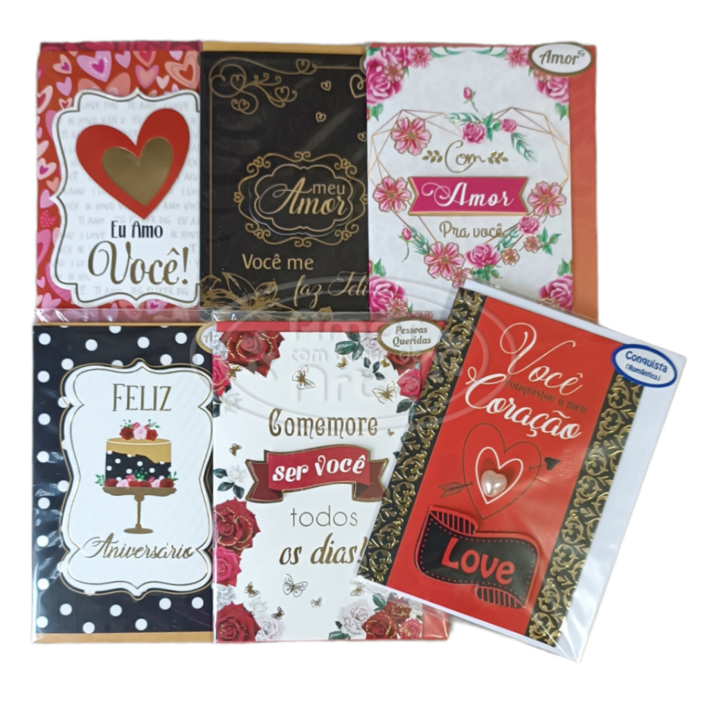 Kit 6 Cartões de Felicitações Amor / Aniversário / Pessoas Queridas / Conquista (Romântica) 7,5 x 11,0cm com Envelope, ForAll.