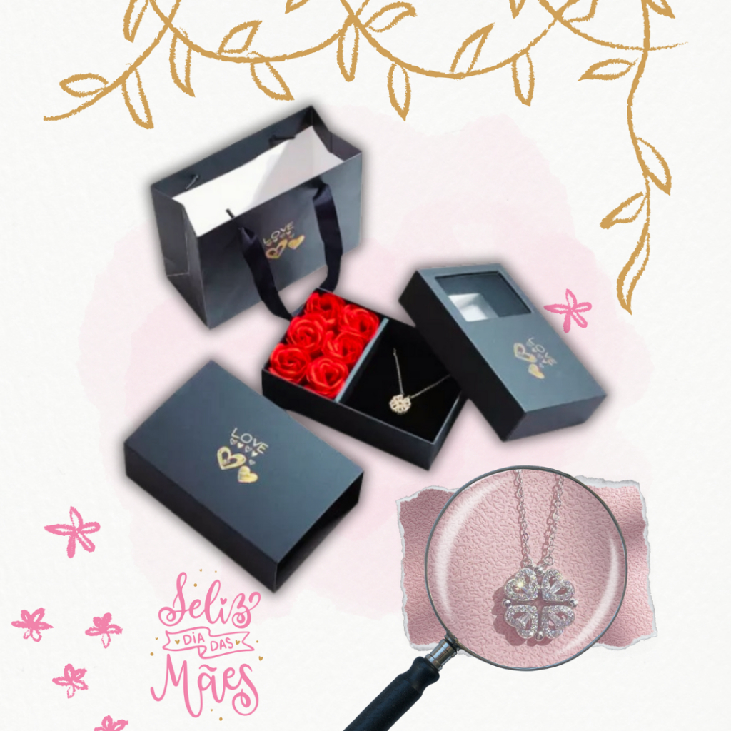 Colar Trevo 2 Em 1 Magnético Dobrável Feminino De Corações, kit perfeito para o dias das mães.