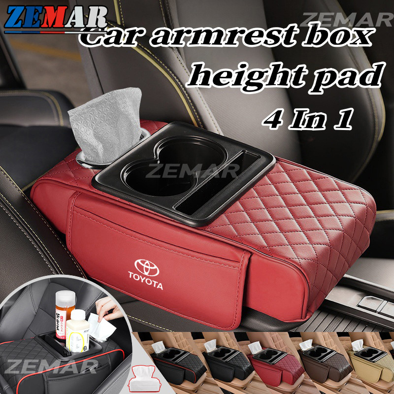 Almofada De Apoio De Braço Para Carro Toyota 4 Em 1 Proteção Console Central De Couro Com Caixa De Tecido Bolsa De Armaz