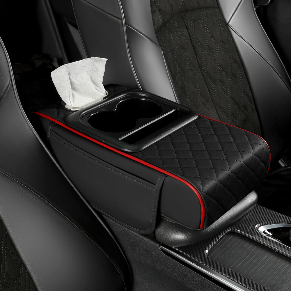 Almofada 3 Em 1 Para Console Central De Carro , Apoio De Braço , Caixa De Tecido , Couro PU Capa De