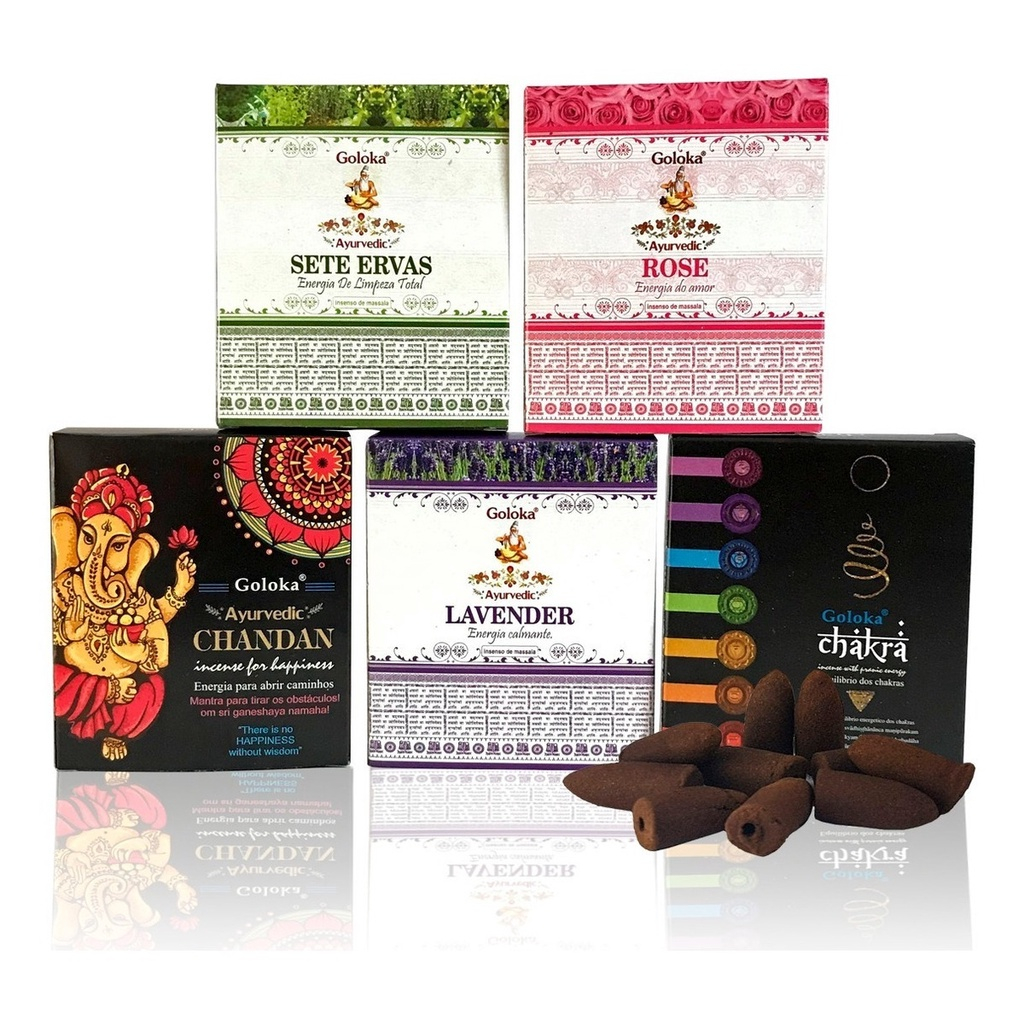 Incenso Cone Cascata De Fumaça Backflow Goloka Diversas Fragrâncias Caixa Com 10 Cones