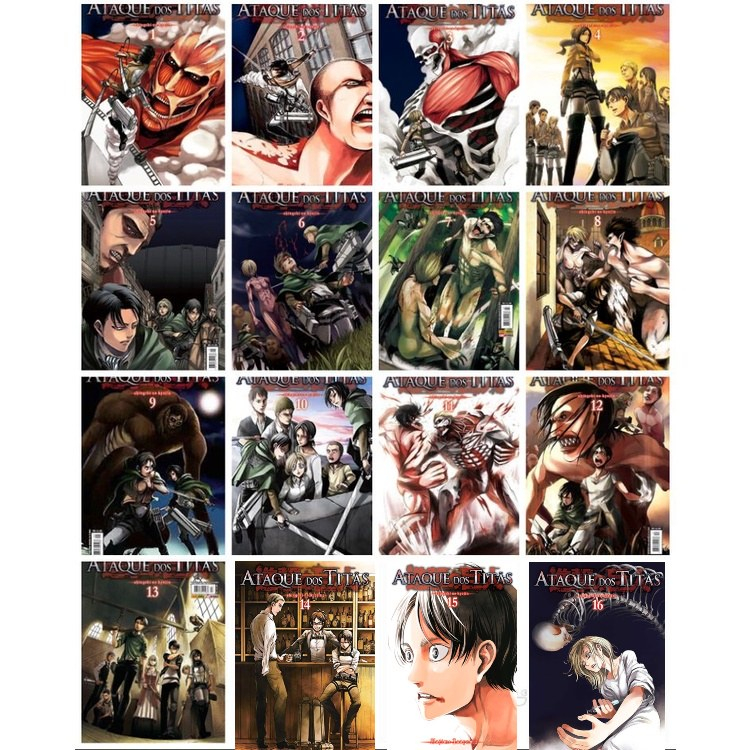 Ataque dos Titãs Edições 1, 2, 3, 4, 5, 6, 7, 8, 9, 10, 11, 12, 13, 14, 15, 16, 17, 18, 19, 20, 21, 22, 23, 24, 25, 26, 27, 28, 29, 30, 31, 32, 33, 34, 34 variante Manga Panini