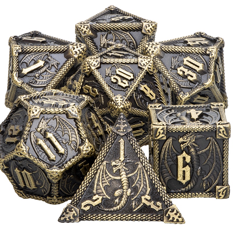7PCS DND Dados De Metal Ouro Antigo RPG Mágico Poliédrico Feito À Mão Grandes Para D + Dungeon E Dragon Tabletop Jogos De Jogo De D20 D12 D10 % D6 D4