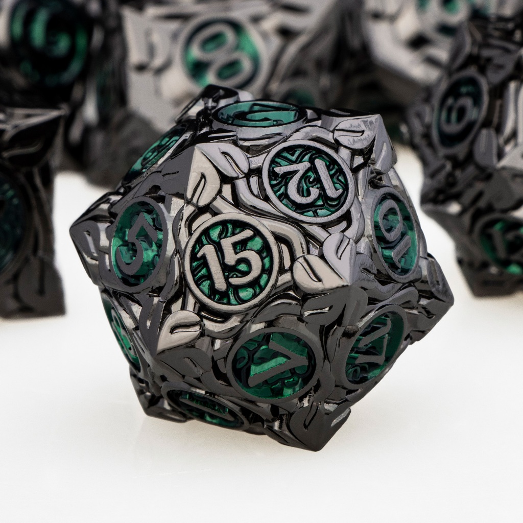 7 Pcs Verde DND Metal Dice RPG Poliédrico Mágico Feito À Mão Dados Grandes Pesados Para D + Dungeon E Dragon Table Role