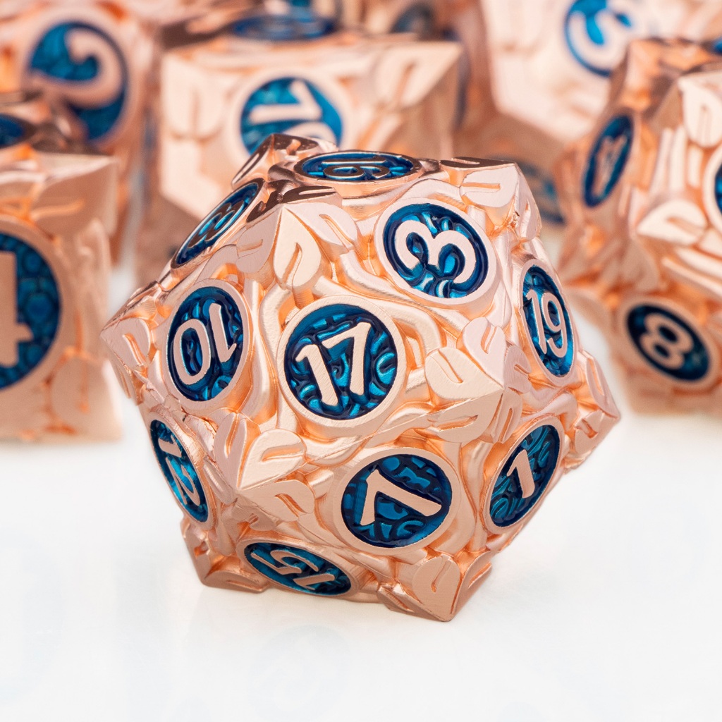 7 Pcs DND Metal Vermelho Cobre Azul Dados RPG Poliédrico Mágico Feito À Mão Grandes Para D + Dungeon E Dragon Table Role