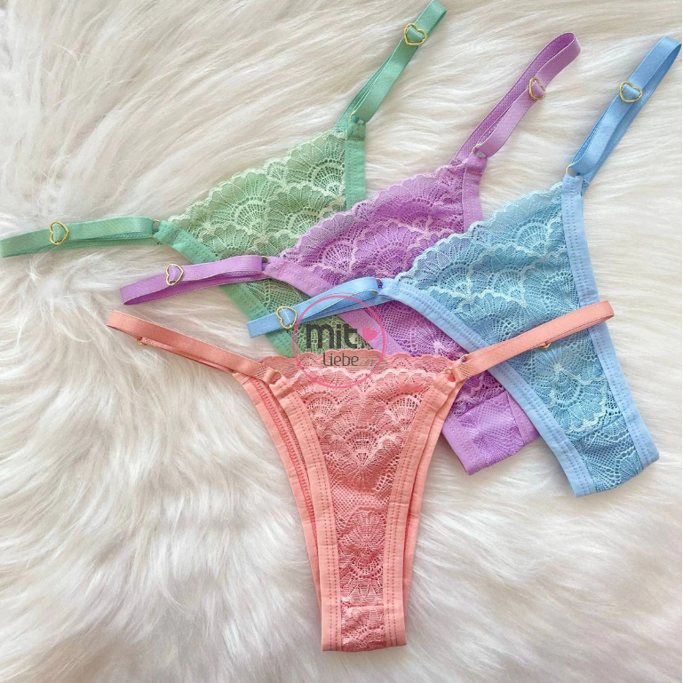 Kit 3 Calcinha Tanga De Renda Lingerie Com Regulagem de Coração E Forro