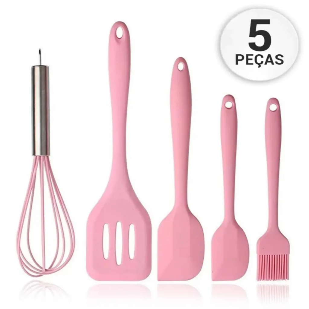Kit Culinária Conjunto Com 5 Peças em Silicone Batedor Espátula Pincel Fue Artigos De Cozinha