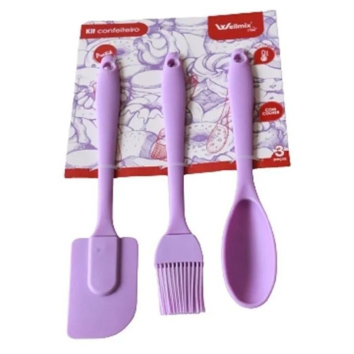 Kit 3 Peças Colher E Pincel Espátula De Silicone Culinário