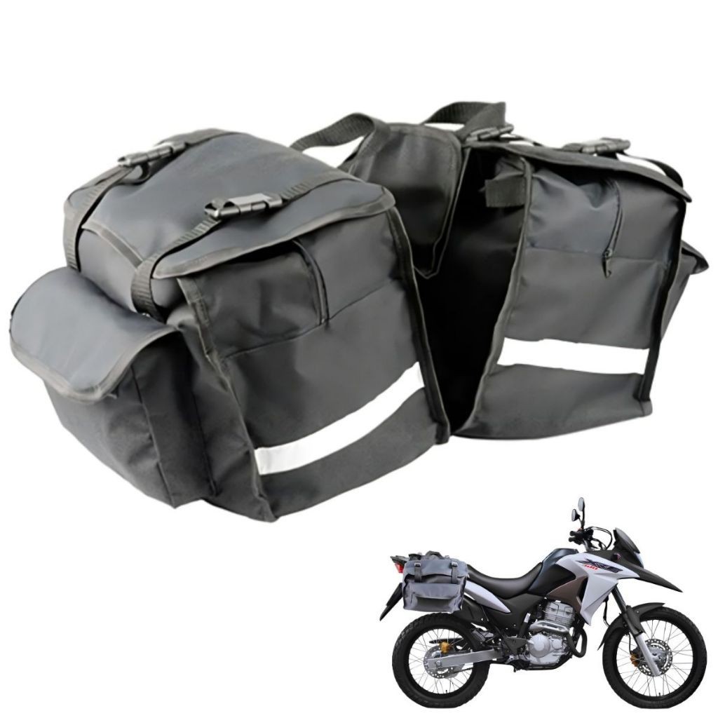 Bolsa Alforge Lateral Universal Par Baú Moto Custom Impermeável Reforçado 62 Litros Nylon Forrado Todas As Motos