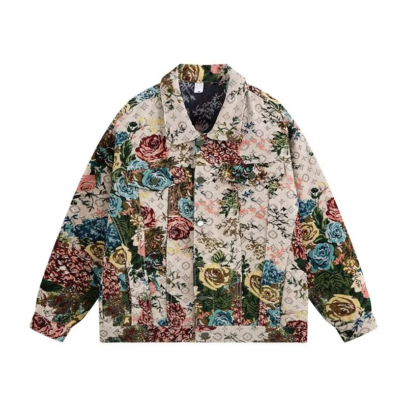 Pintura a óleo europeu-americano High-End a óleo Loose Jacket Retro Floral Design Lapel Coat High Street Puffian Handsome Denim Jacket Niche Design Original Sense Coat Trendy